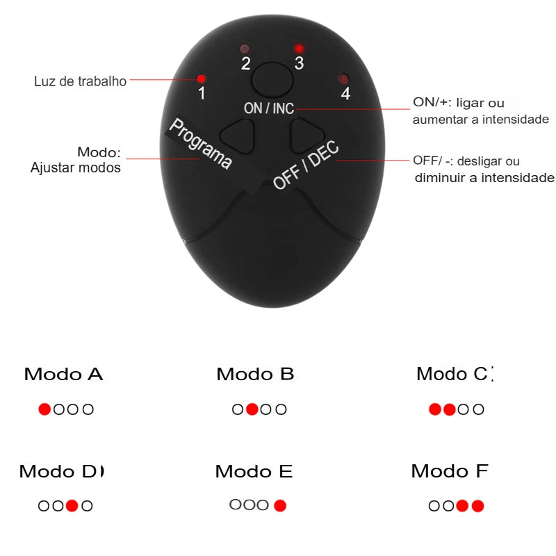 O aparelho é fácil de usar, com um único botão e 6 modos de operação, oferecendo um treino simples e eficiente para músculos tensos.